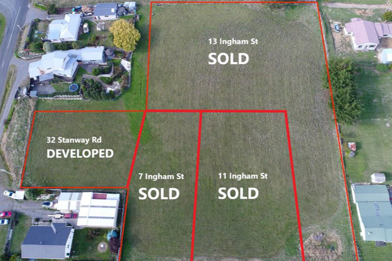 4 lot residential subdivision in the rural Manawatu village of Halcombe completed and sold in 2019. Lots ranged in size from 1,012sqm to 5,162sqm. Will soon accommodate up to 8 new homes.
