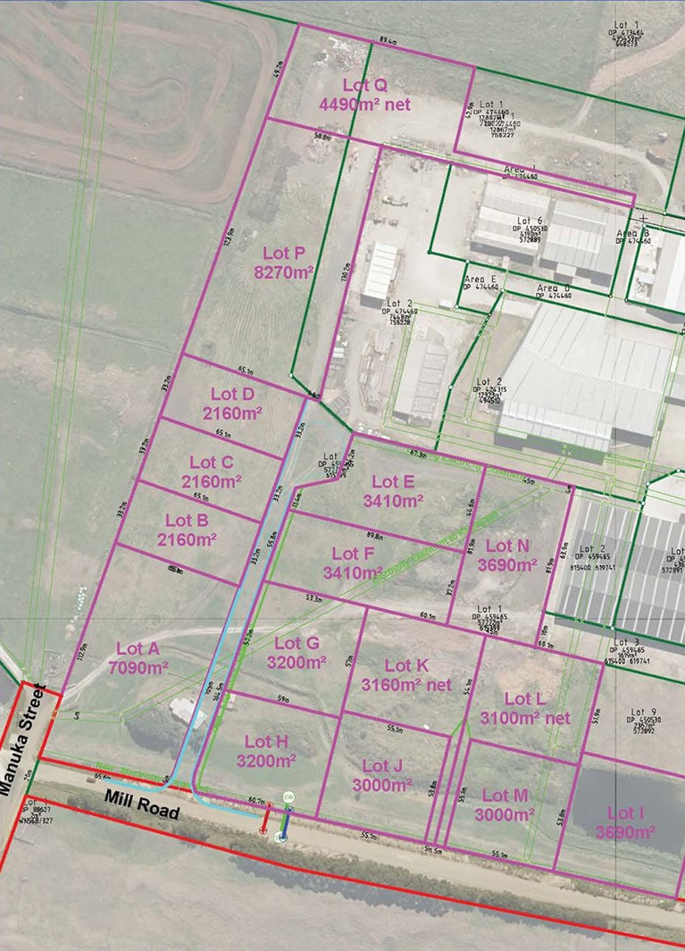 2,160sqm industrial lot in Whanganui’s newest industrial subdivision. Design and build lease options to suit Tenants specific requirements available. Subdivision completion and title expected mid 2021.